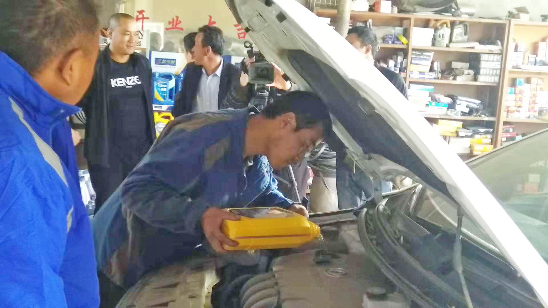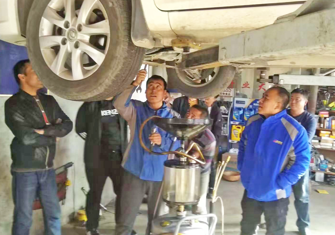 在活动现场,金雪驰工作人员对金雪驰润滑油进行了细致讲解,不仅为用户们展示了全合成汽油机油金1号、涡轮增压专用T族系列,抗油泥净道系列等畅销产品,同时介绍了今年上市的T族特级S、发动机清洗剂等全新产品。金雪驰兰州分公司销售总监赵伟鹏更是为用户们现场演示了金雪驰自动等量变速箱油换油机,省工省时的金雪驰动态智能换油机引得现场用户的连连称赞。