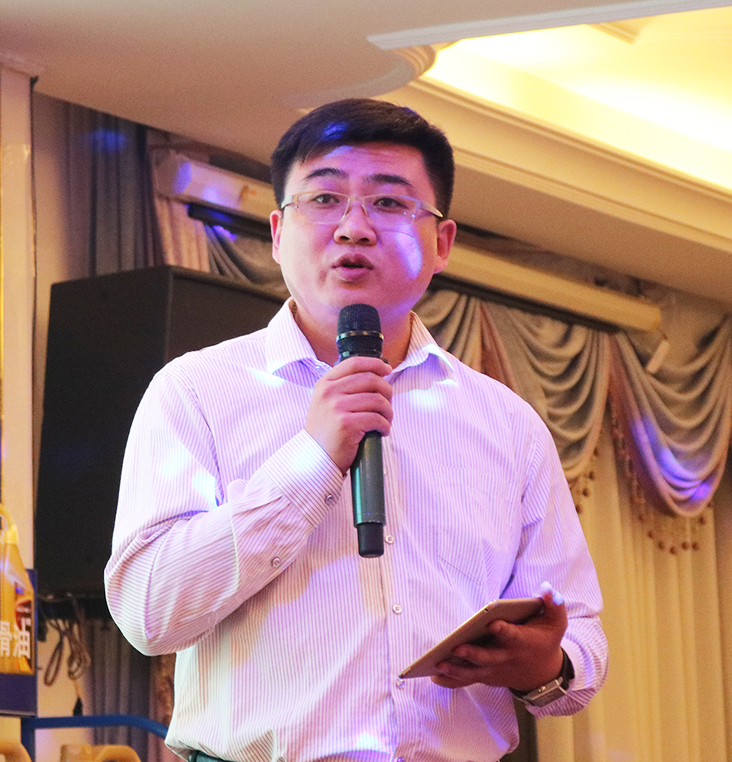 本次会议由金雪驰润滑油上海地区经销商——上海市皲妘商贸有限公司董事长祝军伟致开幕词,他首先向全体到场金雪驰家人表示真挚的感谢,并对金雪驰长期以来的对上海市场的支持表示感谢。他说,新疆金雪驰科技股份有限公司是专注高品质润滑油二十年的民营润滑油十强企业,其优异产品品质和强大的公司实力是毋庸置疑的,自双方合作以来,金雪驰以双赢的经营理念,大力扶持上海终端市场,皲妘今天的成就离不开金雪驰。他表示,皲妘愿与金雪驰携手并肩共同为广大合作伙伴提供完善的售前、售中、售后服务,与合作伙伴一起共创美好未来。