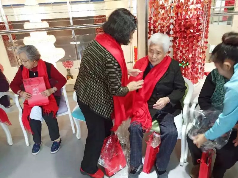 一进养老院的大门,金雪驰爱心小组成员就听到阵阵的歌声……工作人员介绍说,这里坐的老人最年轻的都是80多岁了,老人们知道金雪驰爱心小组要来,一早就等着啦!欢声笑语中,金雪驰爱心小组成员为每一位老人戴上了围巾,与老人们度过了愉快的下午时光。有一位92岁高龄的奶奶为了表达感谢,即兴说了一段"大实话"的顺口溜,老人朴实的语言,深深印刻在了在场所有人的心里。