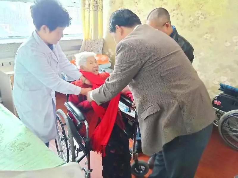 得知养老院的马奶奶因病不能下床后,金雪驰爱心小组又前往病房看望了马奶奶,马奶奶和金雪驰爱心小组成员已经是“老熟人”了。老人一听说是金雪驰爱心小组来了,一下子从床上坐起来,紧紧握住了金雪驰爱心小组成员的手,感动得不知如何言语。金雪驰爱心小组成员为她穿上新衣服,戴上了红围巾,老人咿咿呀呀地依稀说着“谢谢,谢谢”。虽然大家无法听清老人的话,但能感受到老人的浓浓情谊。金雪驰是真心的在做爱心事业,实实在在的为老人们送去关爱和温暖。