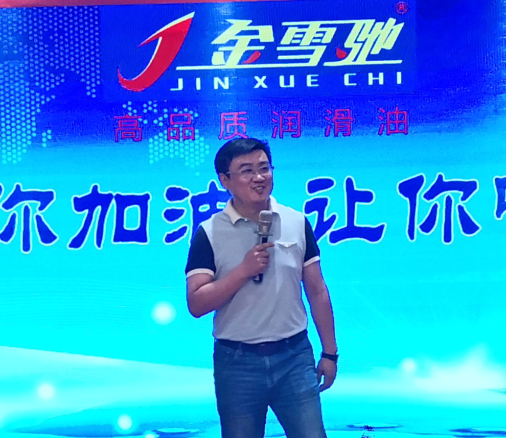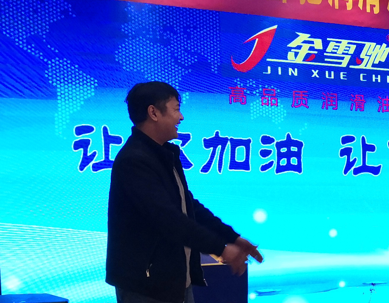 开封地区经销商赵军强致辞,他首先对各位伙伴的到来表示热烈的欢迎,同时他感谢金雪驰润滑油长期以来对开封地区的大力支持,开封地区目前所取得的成绩离不开在座的帮扶和支持,他预祝本次推广会取得圆满成功。