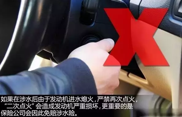 如果在不知情的状况下驾车驶入深水区,汽车熄火,那么千万不要再次发动,因为此时汽车很可能已经发动机进水,一点火发动机就完了。正确的做法是赶紧下车,确定是不是排气管进水了,如果确实如此,赶紧找拖车吧。