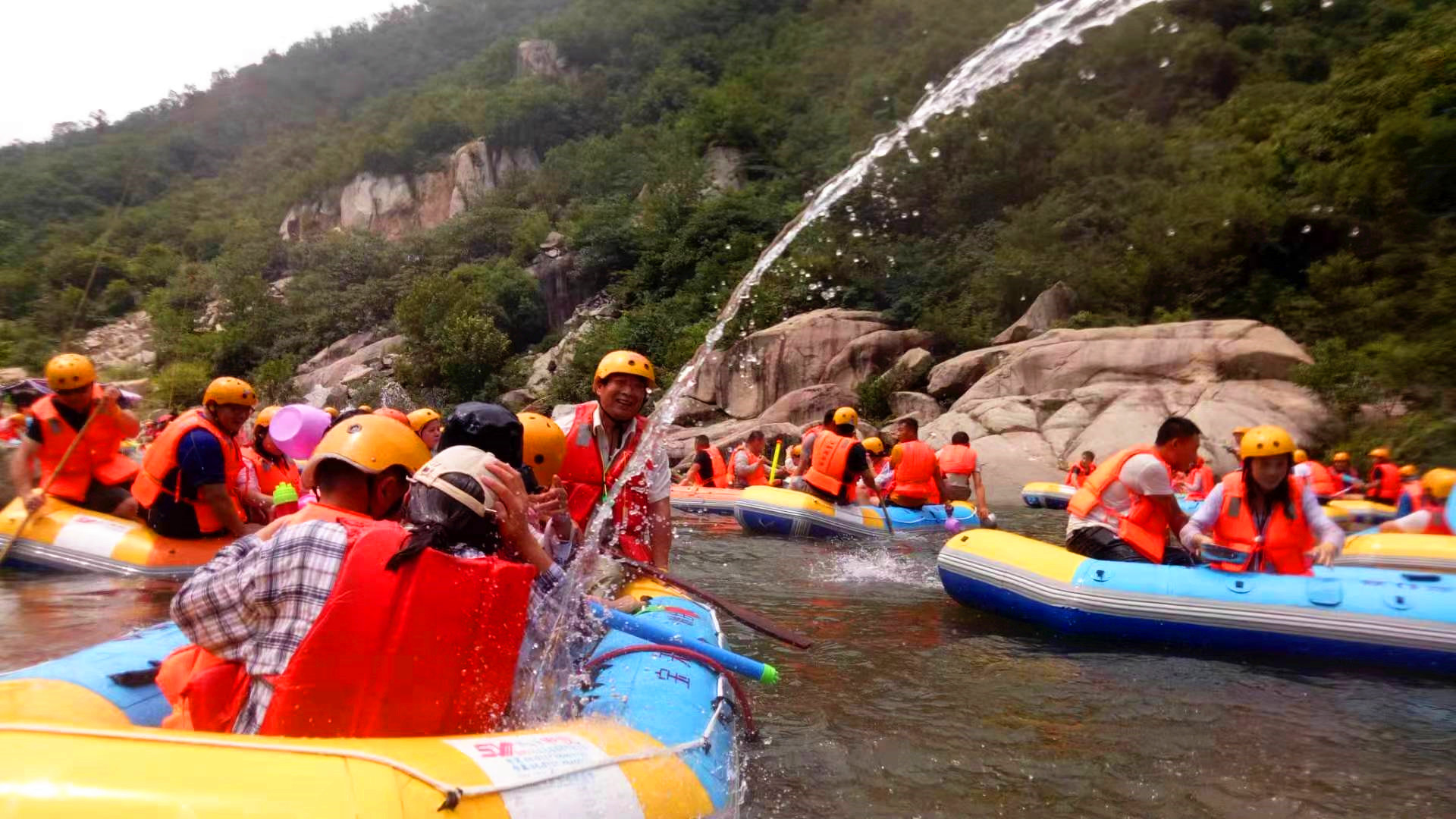 在悠长的河谷中,一座座山岭飞恃岸边,形成数个S道,一弯未过,一弯又起,峰回路转,弯弯相连,给人以“山重水复、柳暗花明 ”的不同感受。大家一起打水仗、撞划艇,嬉笑声、呐喊声此起彼伏,不绝于耳,仿佛回到了童年,忘记了城市的喧嚣,忘记了生意的烦恼、修理的劳累,欢笑声汇集成了一首首欢快的赞歌。