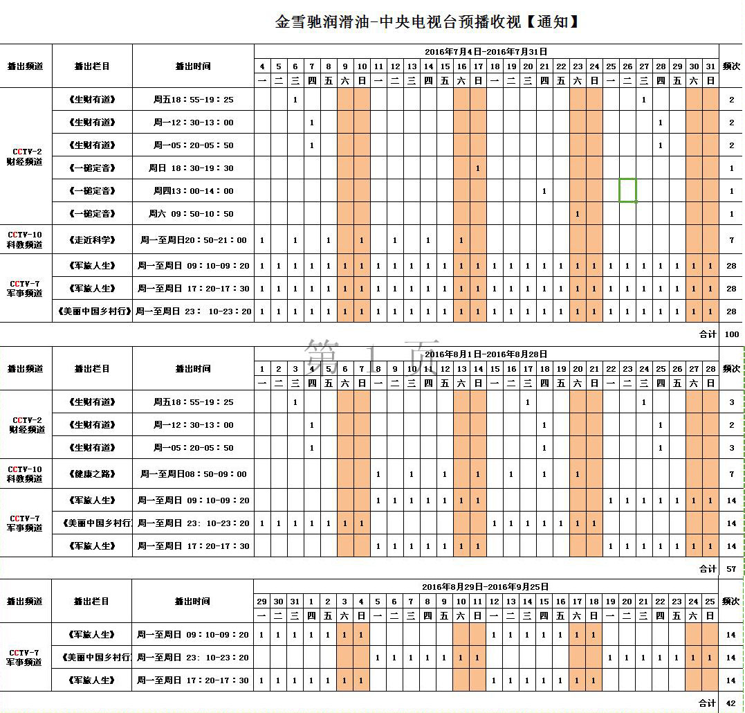 金雪驰润滑油央视播出时间表
