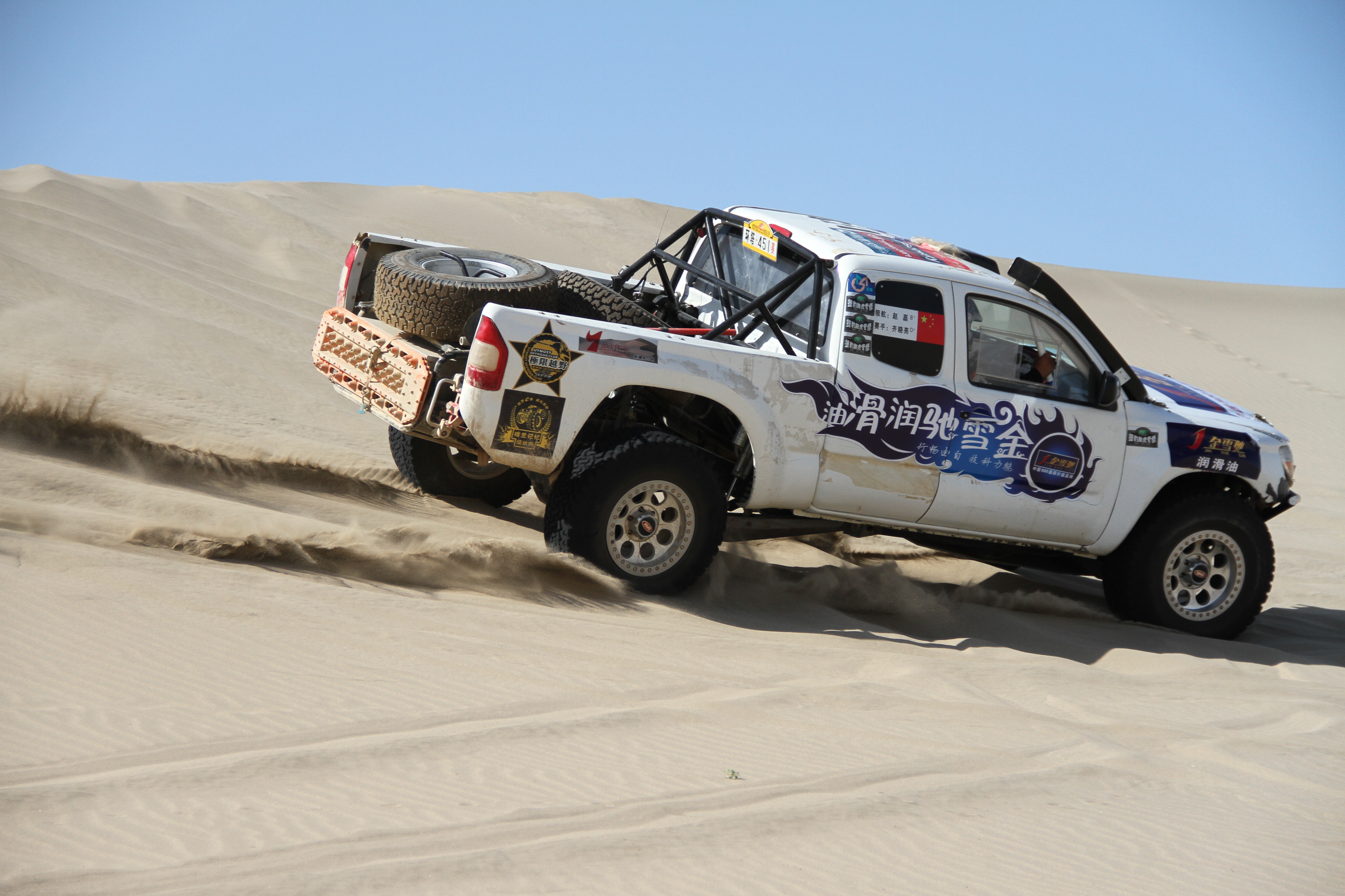 本次活动邀请荣获“2015中国环塔(国际)拉力赛”公开2组冠军的库尔勒承天车队金牌赛车手共同参与,自西向东,横穿塔克拉玛干大沙漠,所过荒漠,高温时段地表温度达七十多摄氏度,空气温度直逼六十摄氏度,这是对金雪驰润滑油高温性能的一大严苛考验。