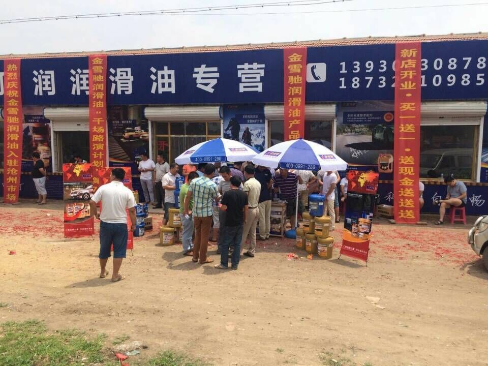 沧州首家金雪驰润滑油专卖店盛大开业,该店按照金雪驰润滑油形象店风格设计,店面装修色彩鲜明,金雪驰门头牌醒目大气,给人耳目一新之感,并在店内设立了产品展示区、换油中心及客户休息室,为用户选购金雪驰润滑油产品提供了便利。
