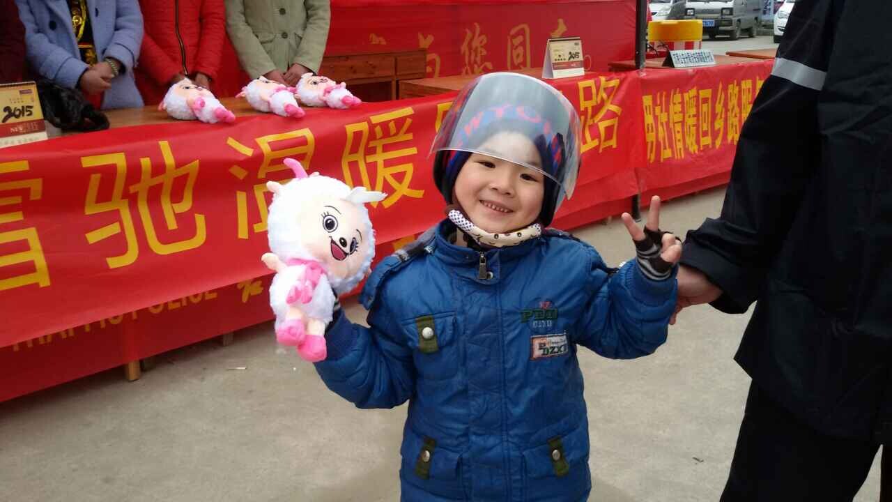 在人群中,记者看到,一群身穿红色民族传统服饰的志愿者显得异常醒目。她们手拿羊年玩偶,逐一分发给跟随父母骑车返乡的儿童。“我们是特地从新疆赶来这里,为返乡的农民工兄弟提供志愿服务的。”乌鲁木齐隆成实业有限公司市场部经理张宇介绍,在出发前,他们还提前选购了一批书包、保暖手套等礼品,希望让“铁骑大军“感受到社会的关爱。“这是一件非常有意义的事情,我们希望尽自己的努力回馈社会,明年有机会我们还会再来。”张宇说。
