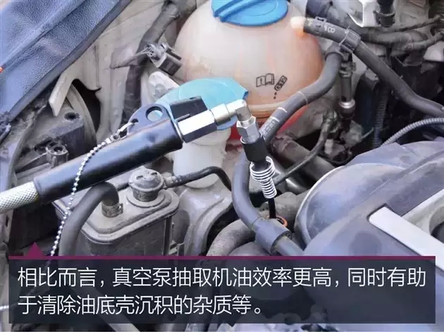此外,还有一种利用真空泵抽取机油的方式。理论上,真空泵抽取机油可以更容易将油底壳沉积的杂质吸出,去除杂质的效果理论上会更好。但所需要的设备要求会比较高!