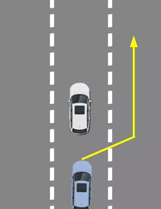 3.同车道的车并到右侧车道,然后超越前车,并且保持右侧车道行驶。