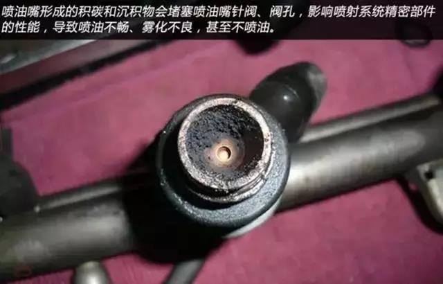 在燃油系统工作了一段时间之后,燃烧形成的积碳和胶质会附着在喷油嘴上,使喷油嘴出现粘着甚至堵塞的现象。而空气、汽油中的杂质与尘埃,也会造成油路不畅或堵塞,最终在喷油嘴上形成积碳和沉积物(气门、燃烧室、进气管也会形成积碳,但本文提到的只针对于喷油嘴上的积碳)。