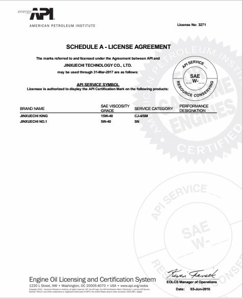 “金雪驰1号”和“金雪驰王牌”荣获API全新认证