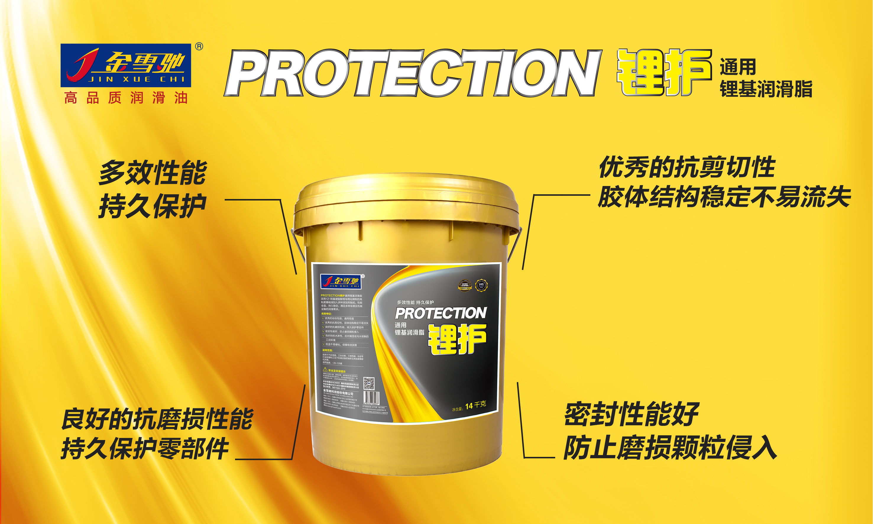 PROTECTION锂护通用锂基润滑脂3#/2#/00#/000#性能特征多效性能持久保护PROTECTION锂护通用锂基润滑脂采用12-羟基硬脂酸锂皂稠化精制的高粘度基础油加入多种添加剂制成。性能全面、持久稳定,满足多种车辆及机械设备的...