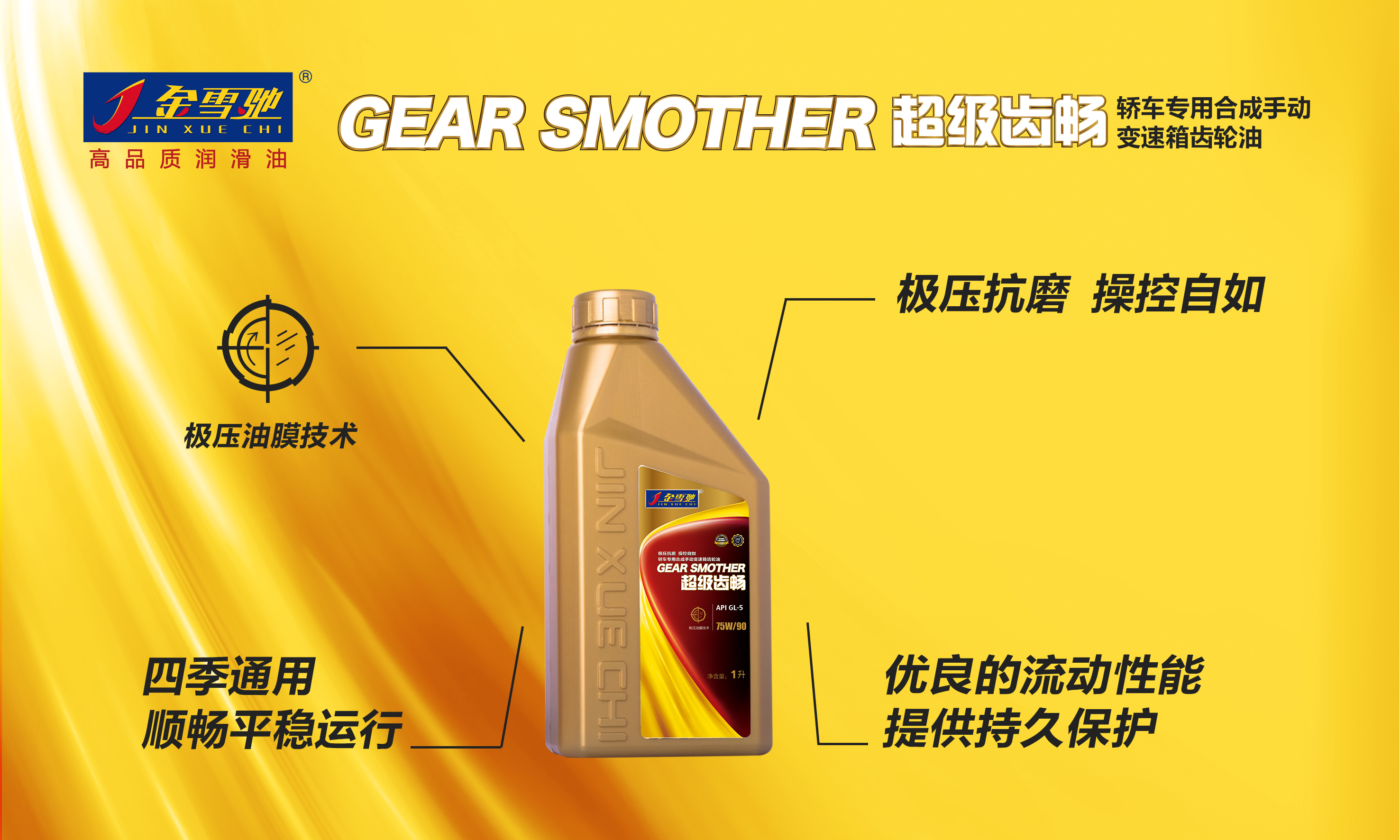 GEARSMOTHER超级齿畅轿车专用合成手动变速箱齿轮油GL-575W/90性能特征极压抗磨操控自如超级齿畅合成型手动变速箱齿轮油,是一款适用手动变速箱的高性能齿轮传动系统润滑油,为要求使用APIGL-5级别的豪华轿车、越野车...