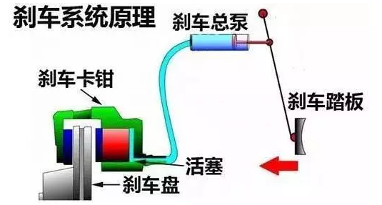 刹车油在刹车系统中起的是传动作用,用脚踩下刹车踏板,经过真空助力器的辅助,推动制动总泵,制动总泵推动刹车油,将脚下的力量通过刹车油传向四个车轮所属的制动分泵,制动分泵推动刹车片,刹车片挤压刹车盘形成制...