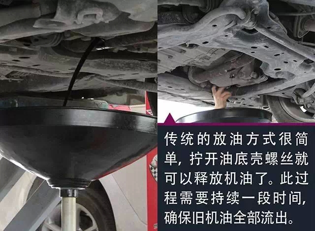 很多汽车快修店都采用真空泵抽取方式更换机油。这种方式除了本身的优势之外,也避免了更换油底壳螺丝(某些品牌的油底壳螺丝为一次性产品,每次放油后需更换新的)的成本,减少油底壳螺纹磨损的风险。