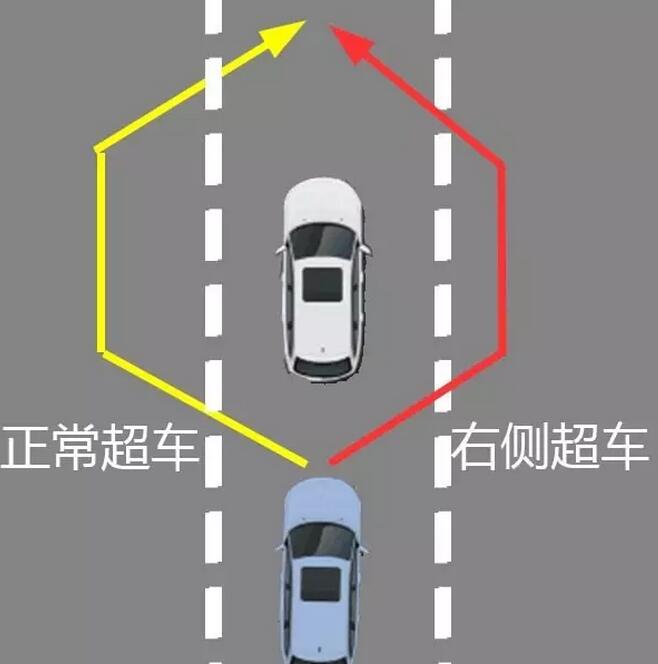 1.右侧车道的车正常行驶,超越左侧车道的车。