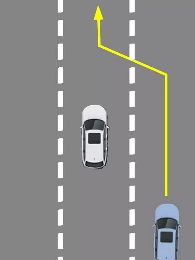 3.同车道的车并到右侧车道,然后超越前车,并且保持右侧车道行驶。