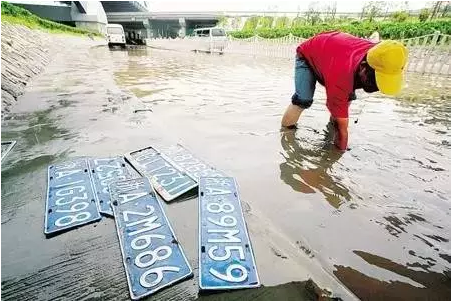 车牌是汽车的身份证,要是车牌丢失,那可是件大麻烦事。但是在积水中行车,车牌被水流冲得左右摇晃,很容易被冲掉。每次发生大规模水浸事件,都有一批车主会丢失车牌,尴尬无比。