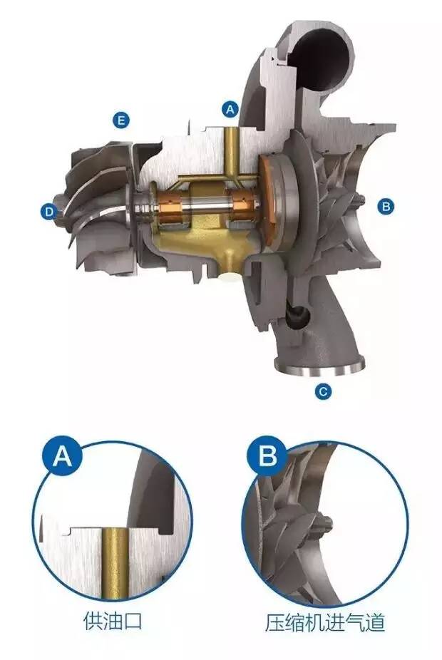机油与涡轮增压器对涡轮增压器轴承的供油区非常关键。涡轮增压器工作温度很高,机油用于冷却和润滑涡轮增压器轴承。