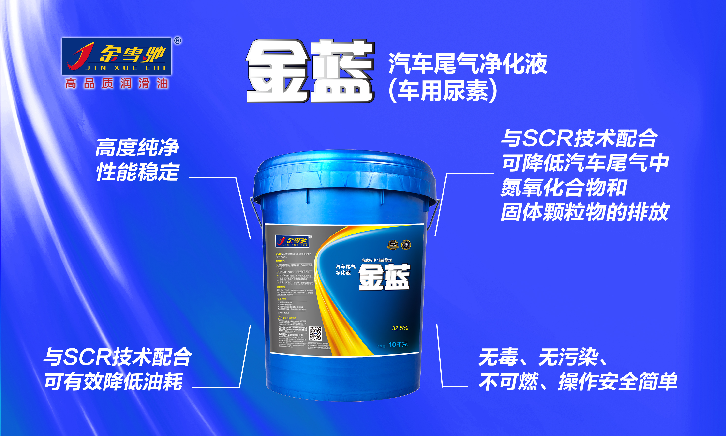 金蓝汽车尾气净化液32.5%性能特征高度纯净性能稳定SCR汽车尾气净化液采用高纯度尿素及纯净水合成。优势特征:1、高纯度溶液,清澈透明,无味或轻微氨水味。2、与SCR技术配合,可有效降低油耗3、与SCR技术配合,可降低...