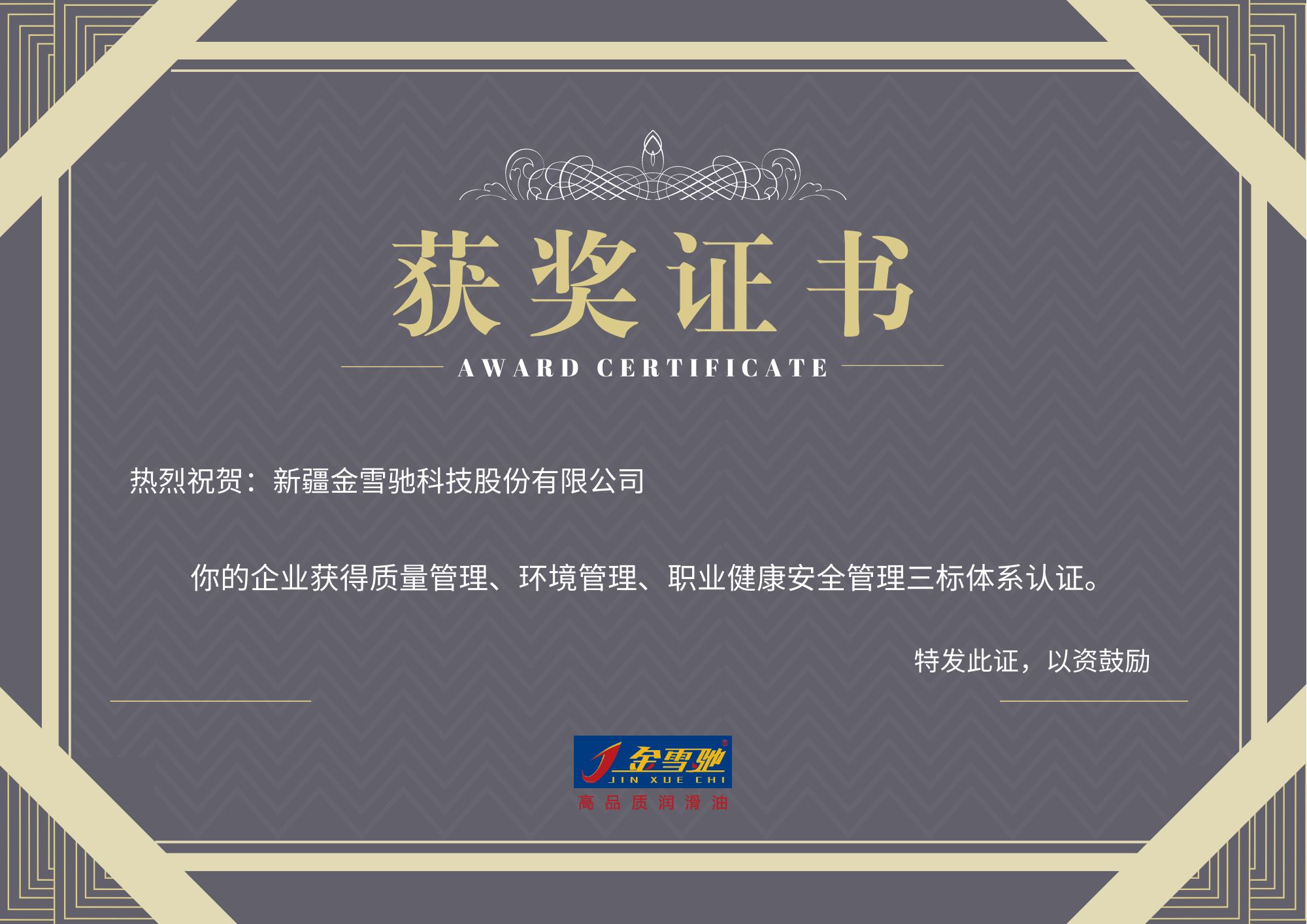 再获认证!金雪驰科技荣获三标管理体系认证证书