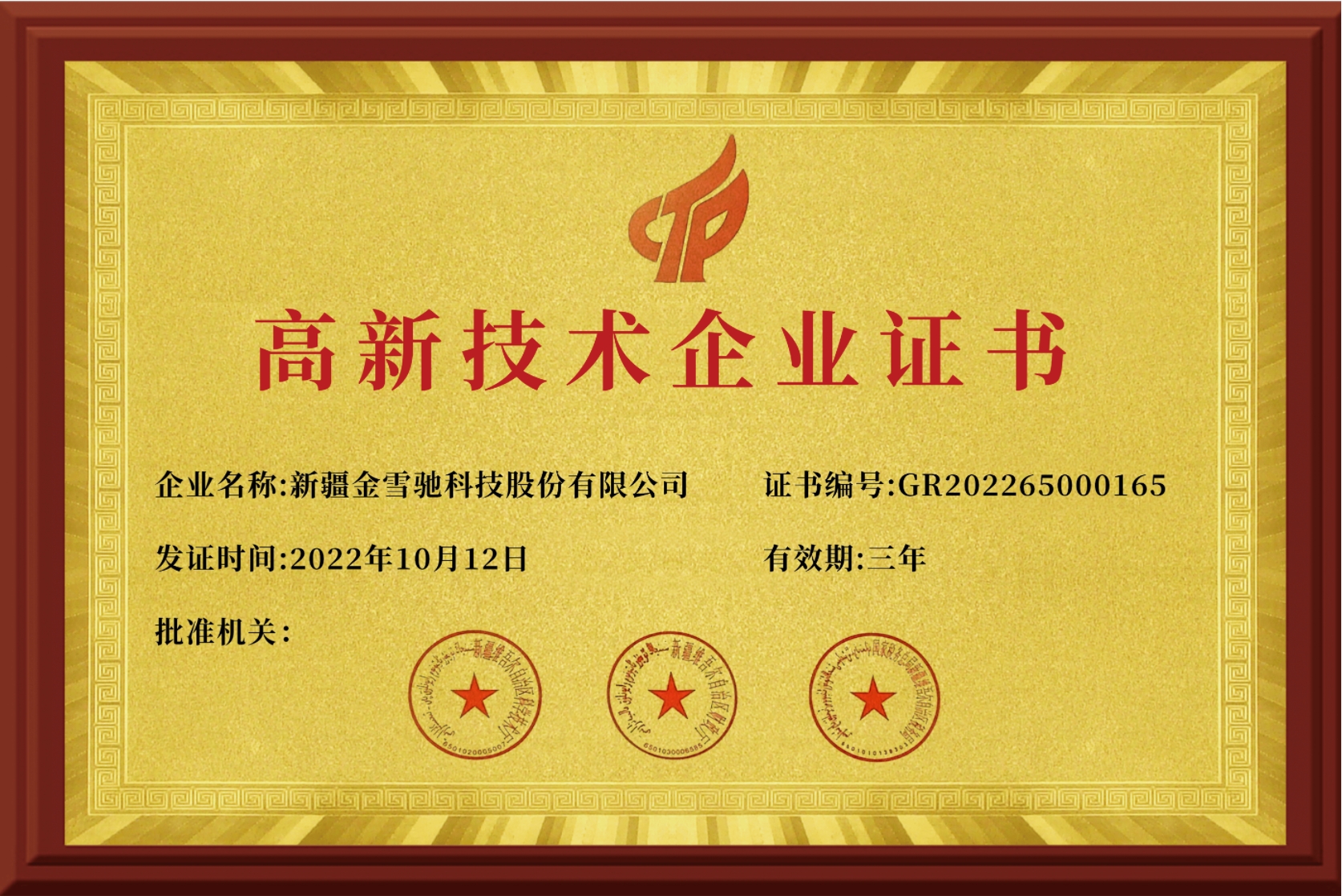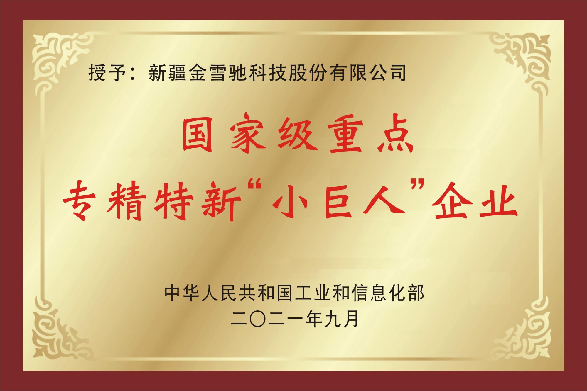 2022年新疆金雪驰科技股份有限公司荣获国家级专精特新“小巨人”企业;