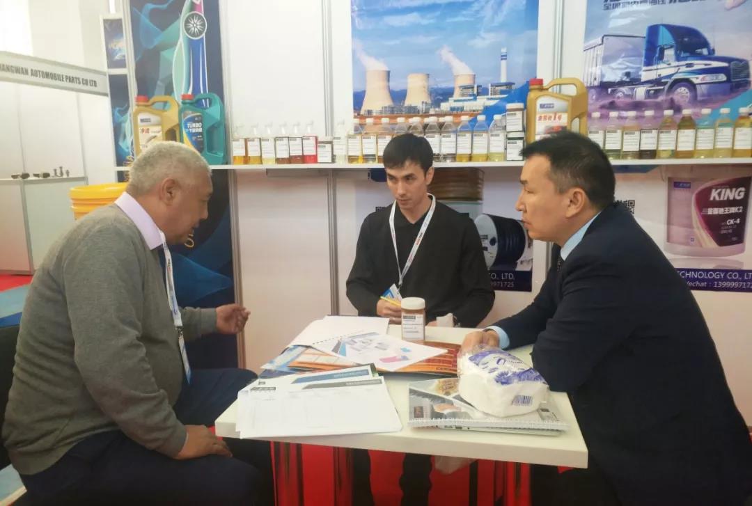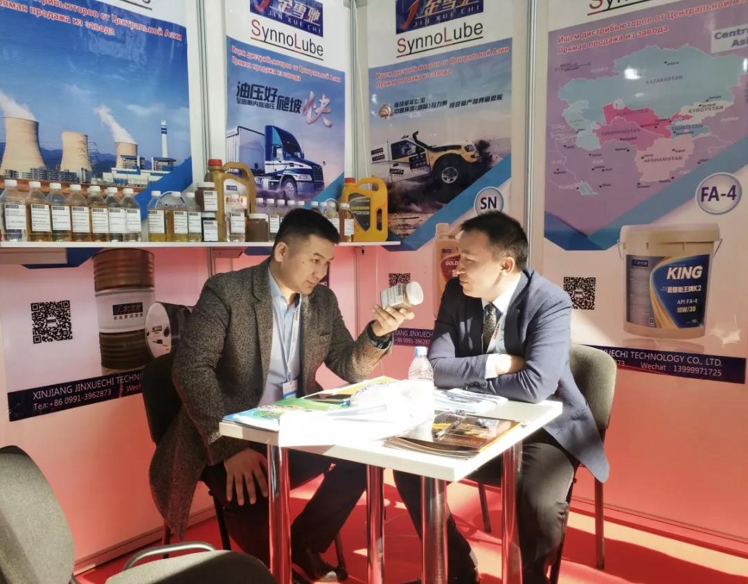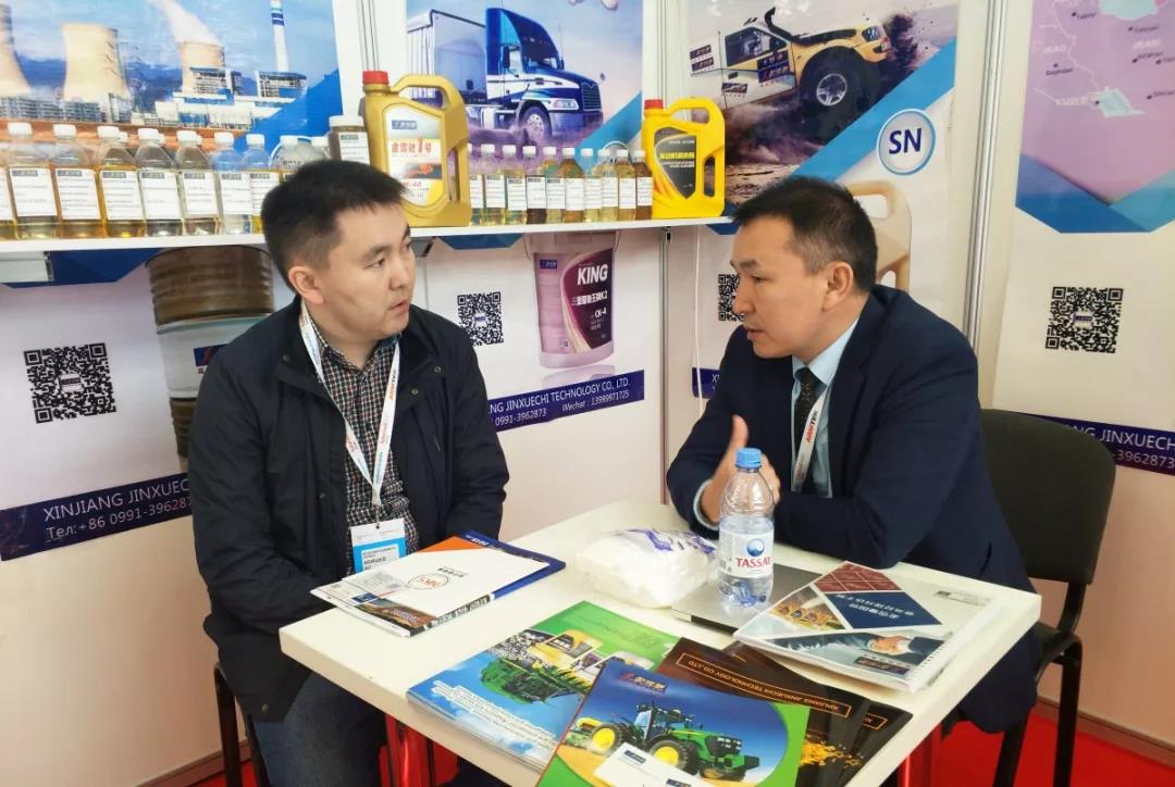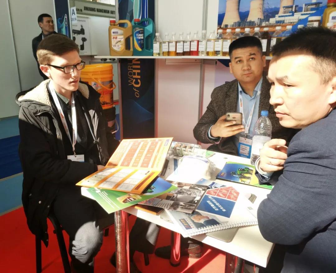 随着近两年金雪驰中亚业务的不断拓展,已经有越来越多的哈萨克斯坦当地经销商,设备、农机、轨道交通用油客户对金雪驰品牌和产品熟知并慕名来到金雪驰展位,咨询产品价格、质量及售后服务,金雪驰国贸分公司总经理叶里提斯·马太耐心地向参观者介绍了金雪驰的产品特色和在当地使用该产品的优势,在叶总的讲解下,诸多客户对金雪驰展出的产品产生了极大的兴趣,希望通过此次机会进行后续深入合作,不仅如此,展会现场还成交了不少订单。