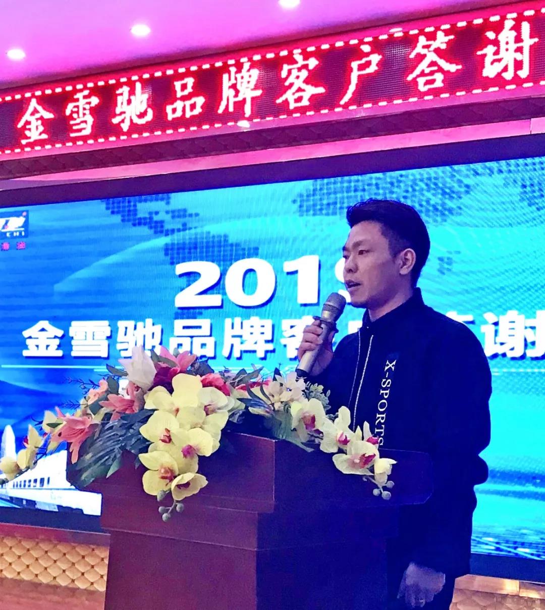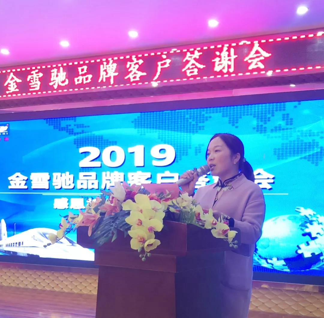 随后,金雪驰泰州地区经销商叶雅莉女士致辞。叶总首先感谢各位嘉宾的到来。她说,正是由于大家的辛勤努力,才构成金雪驰与客户之间和谐相处、共赢发展的良好局面。金雪驰正以稳健的步伐逐渐发展壮大,我们与金雪驰的合作前景会更加美好,未来我们应充满激情,鼓足干劲,力争上游,共迎辉煌。