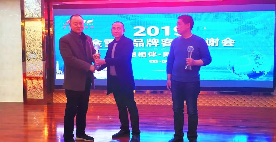 会议到达高潮部分。为感谢大家一年以来的付出与努力,金雪驰为嘉宾们颁发精英合作奖、金牌合作奖的奖杯和奖品。