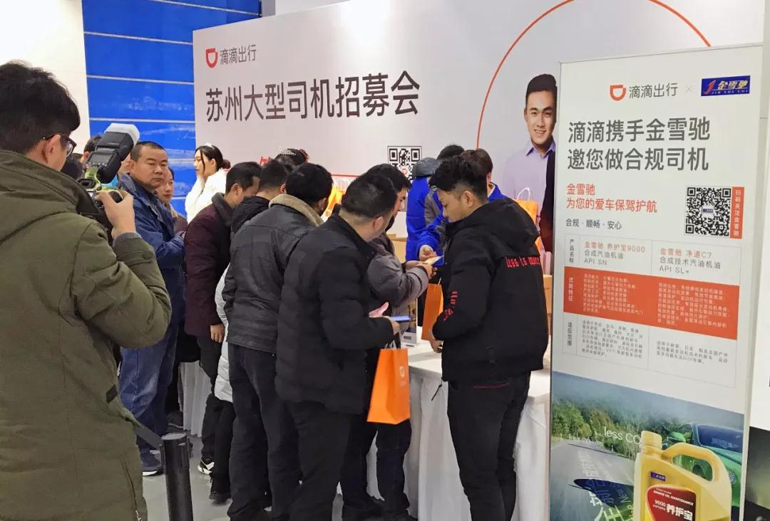 12月15日,由滴滴出行携手新疆金雪驰科技股份有限公司(简称“金雪驰”)主办的“2018滴滴出行(苏州)大型合规司机招募会”在苏州隆重举行,苏州近1000名车主参与,现场十分火爆。