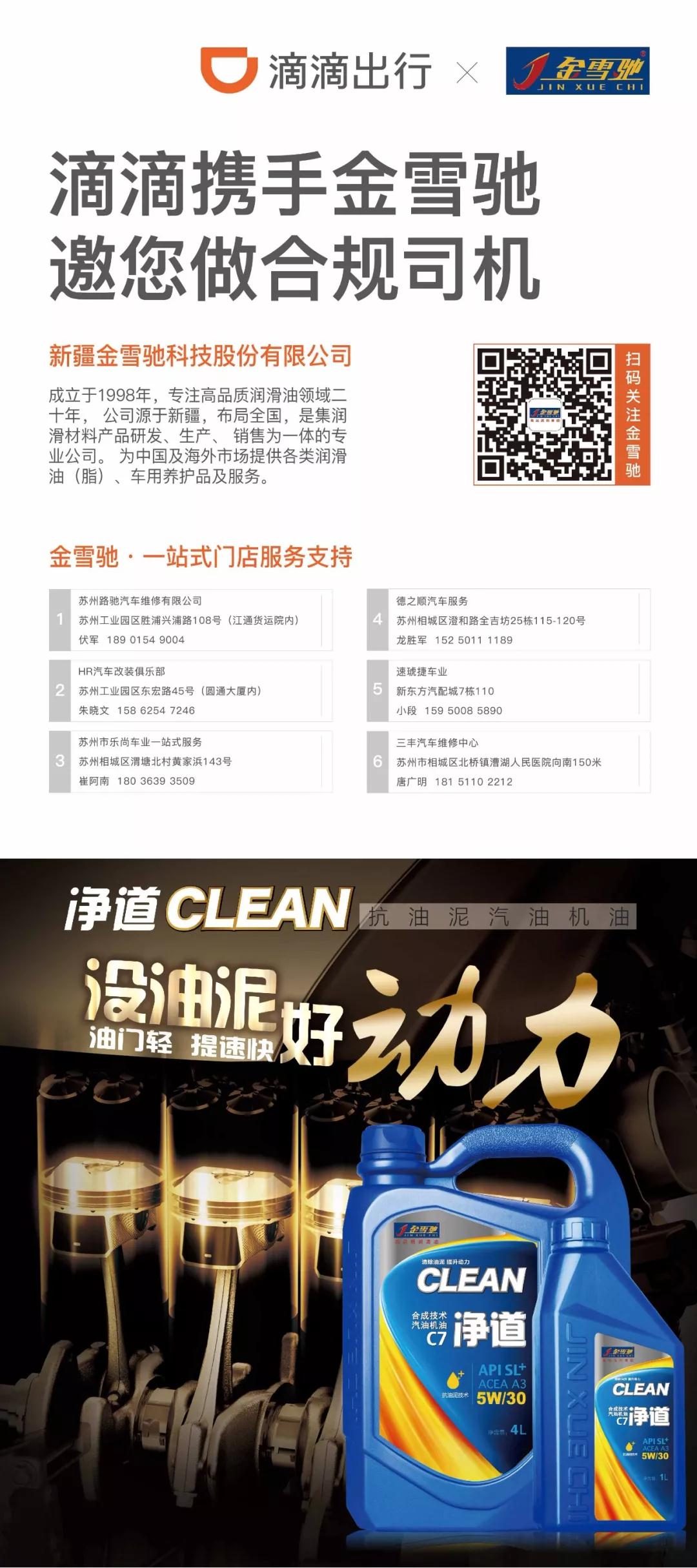 此次合作只是金雪驰在全国范围内与滴滴开展战略合作的开始。后期,金雪驰将在全国重点区域与滴滴开展持续合作,以高品质润滑产品和全面快捷的用油服务助力全国车主安全出行。