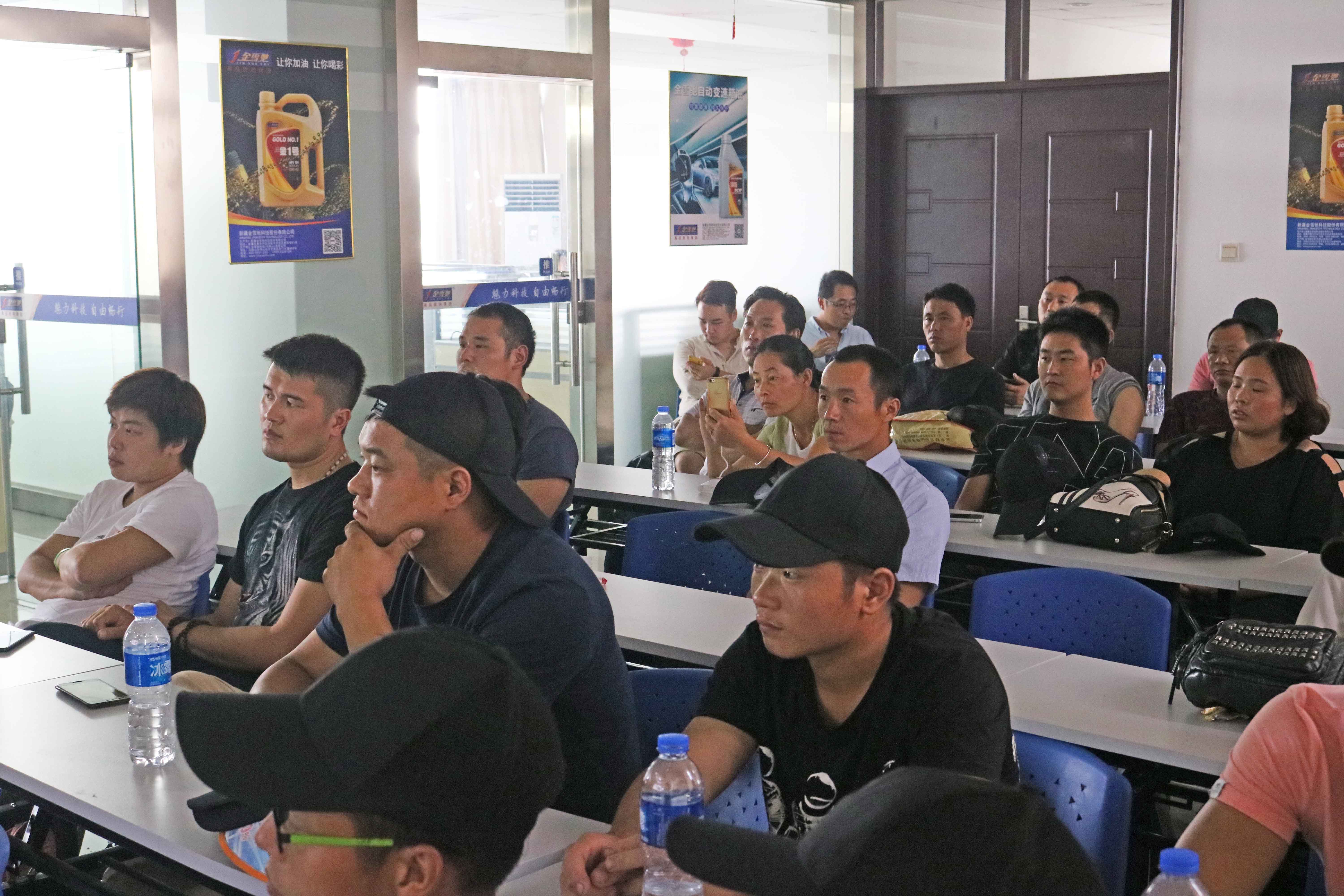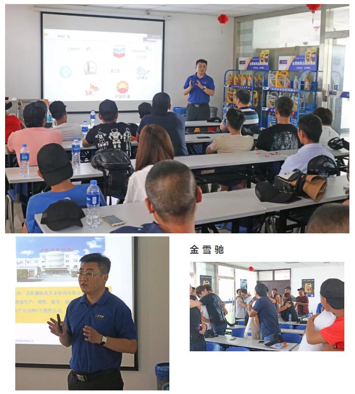▲金雪驰科技(马鞍山)有限公司销售总监杜海泽主持了欢迎仪式,他热烈欢迎大家的到来并为到场的客户讲述了公司的基本情况和未来几年的发展战略。在与客户热烈的游戏互动后,他为客户们讲解了金雪驰T族特级S、金雪驰变速箱油等新产品的卖点和项目推广方案并对客户提出的专业知识疑问详细讲解,专业、生动的讲解得到了现场客户的强烈反响,受到客户的热烈欢迎。