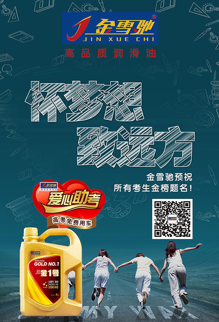 此次为无偿接送考生的爱心司机提供金雪驰净道润滑油,旨在鼓励和呼吁社会有车一族能为考生学子们的平安出行以及护送他们顺利抵达考场,贡献出自己的一份力量和爱心,金雪驰润滑油也希望能通过此次活动为广大考生和父母提供力所能及的关怀与帮助!