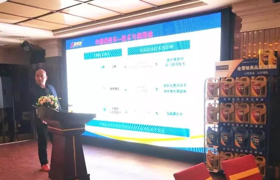 金雪驰润滑油南阳地区经销商薛书峰为现场嘉宾做T族产品知识培训