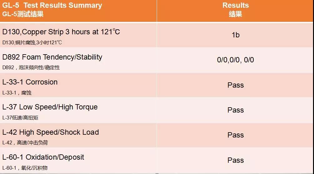 认证:符合API GL-5规范要求,符合美军ML-L-2105D规格。