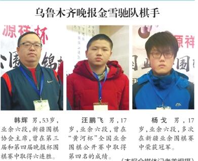 经过筛选,乌鲁木齐晚报金雪驰队出征的3名棋手均为6段。