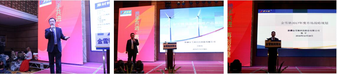 2016年12月18日,新疆金雪驰科技股份有限公司2016年度金雪驰品牌代理商会议在马鞍山甄山丽景酒店隆重召开,会议邀请了200多家优秀代理商代表,以“携手共进,再创辉煌”为主题,旨在颁布经销商政策,奖励优秀经销商,鼓励经销商与金雪驰公司共同发展。