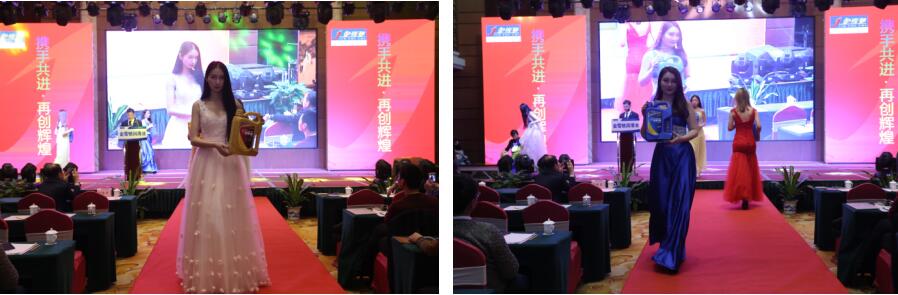 金雪驰品牌七彩系列润滑油产品的走秀掀起了本次会议的第一个高潮