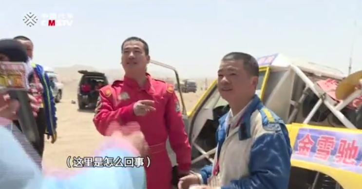 金雪驰新疆西域越野车队205赛车手张砚忠在行驶到距离终点40多公里的赛段时,发现157号赛车手朱志朋油箱没油被困沙漠,毅然将其拉至赛程终点。