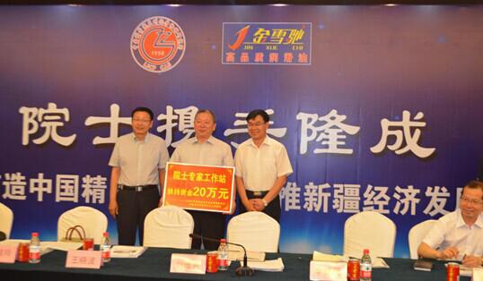 会议由自治区经信委领导主持,隆成实业集团刘辉董事长代表企业进行讲话,自治区科技厅张小雷厅长为隆成实业院士工作站的落成进行授牌,乌鲁木齐经济技术开发区薛继海区长在会议发言后,代表区委、区政府给企业颁发了20万元的扶持资金。