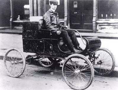 发动机出现后,人们就把马去掉了,只保留后面那部分。于是有了汽车历史上的第一辆汽车“奔驰一号”,它的方向盘是一根能摆动的杆。